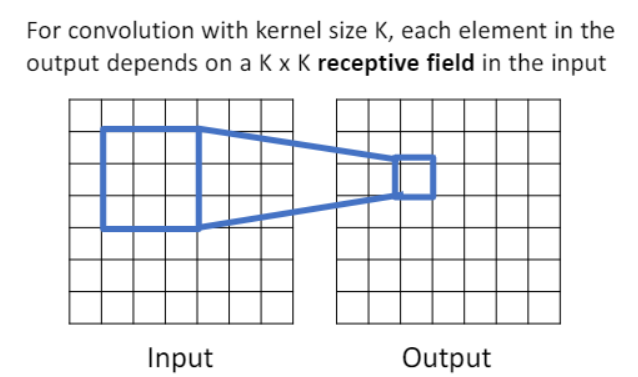 *Receptive Fields : 아웃풋의 한 부분이 인풋의 어느정도를 차지하는지