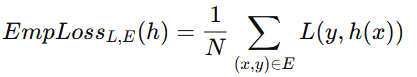 2) Empirical Loss : 현실에서는 진짜 데이터 분포 P(x,y) 를 모르기 때문에, 샘플 데이터 E 를 사용해서 일반화 손실을 추정