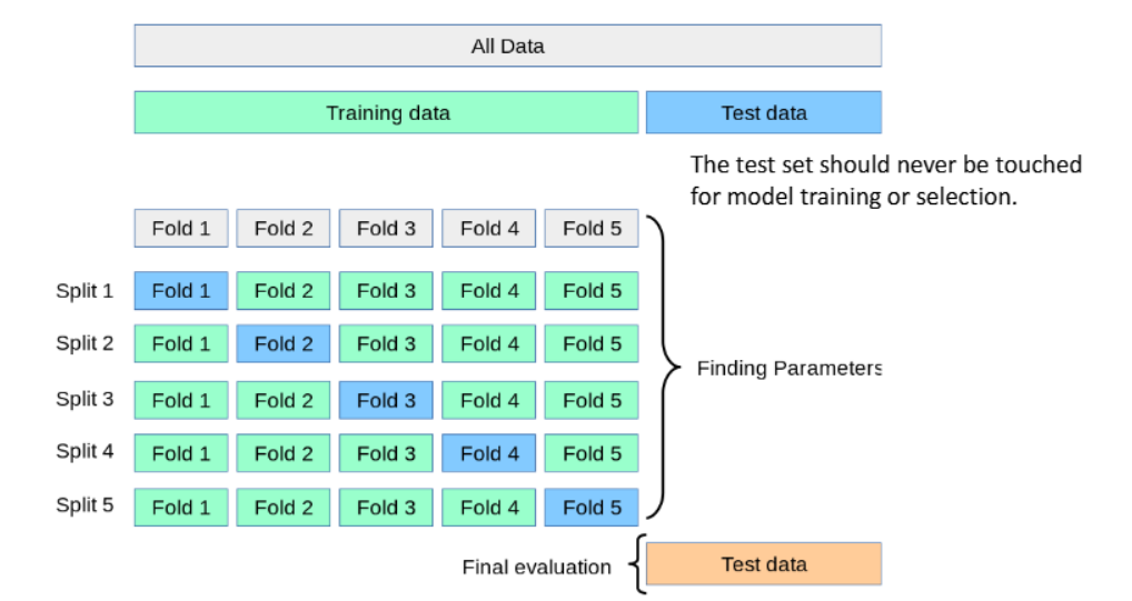 - 따라서 여러 번 validation을 통해 평균 성능을 보는 k-fold 교차검증 필요