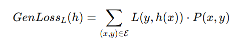 1) Generalization Loss : 우리가 만든 가설 h가 모든 입력-출력쌍 (x,y)에 대해서 얼마나 잘 맞는지를 나타내는 손실의 기대값