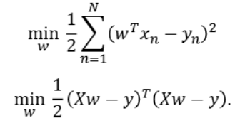 - 위 식을 정리하여 미분해서 0이 되는 지점이 최적의 w임