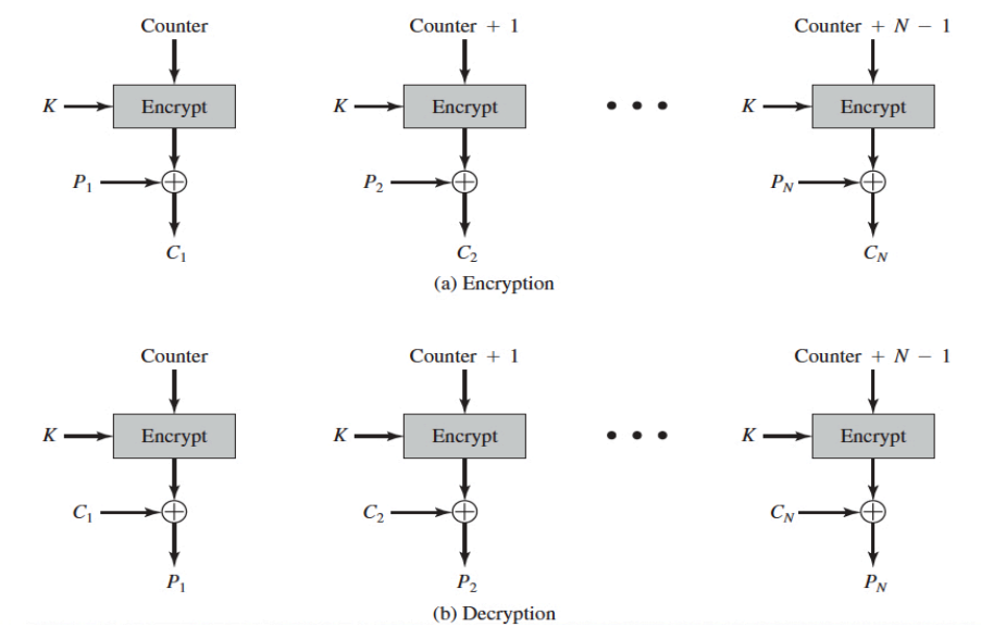 - 복호화는 Enc(K, Ci) = Xi ⊕ Ci